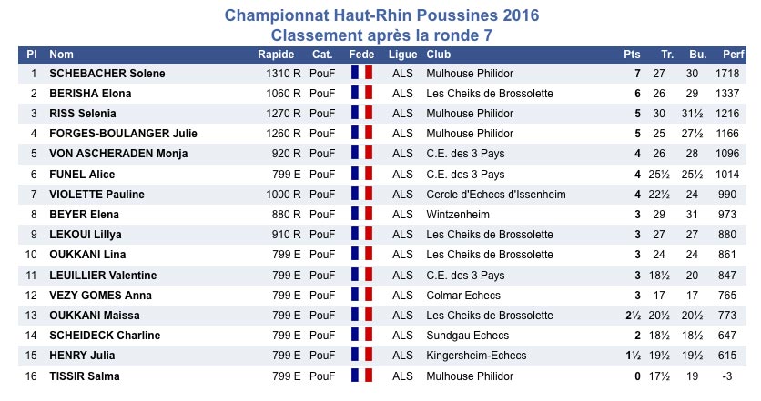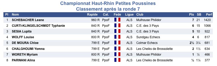 En Poussines : Monja Von Ascheraden est 5 ème , et une nouvelle joueuse progresse : Alice Funel, 6 ème.