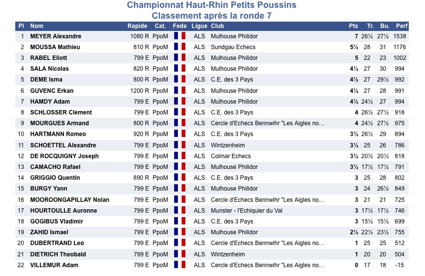 En poussins : le 1 ère année Telmen Baldandorj a survolé la compétition comme prévu et a scoré à 7/7 , ce qui rappelle un certain Patrick G des années 2005-2006 – Telmen était déjà numéro 20 français en PPO .