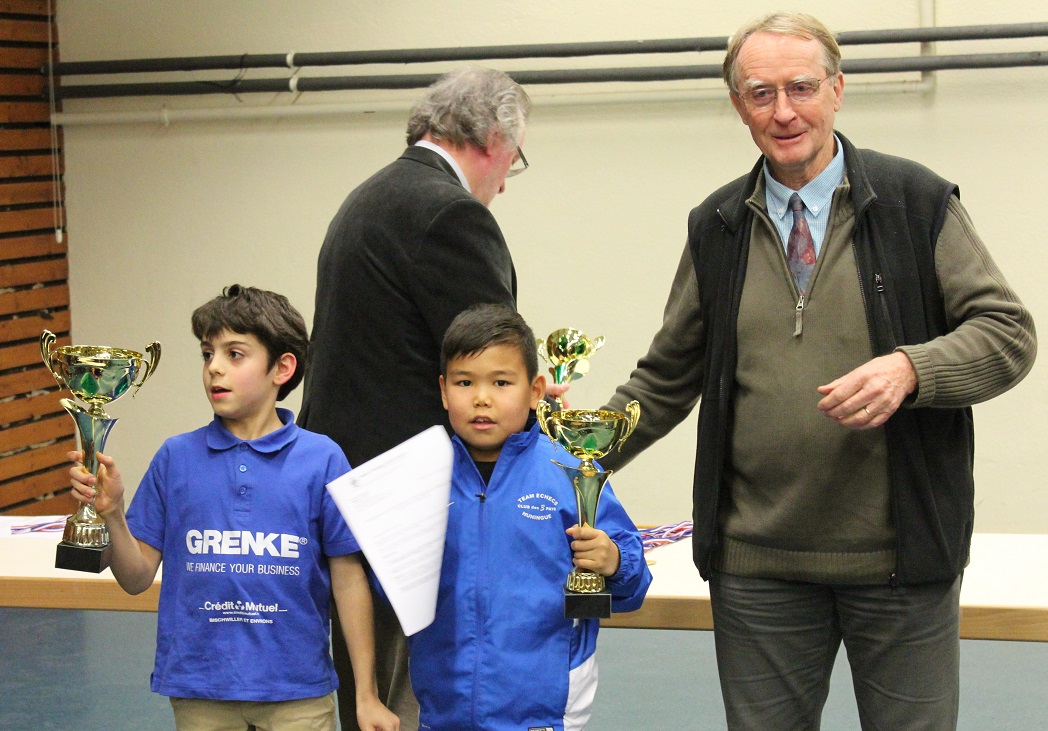 Le niveau était très fort en Po. et surtout en PoF et au final, notre bilan est inférieur à celui ce 2016, mais l’honneur est sauvé avec le titre de vice champion d’Alsace pour le Po. Telmen (5,5/7) , la 6ème place arrachée à la der pour Théo (4/7), le podium à la 3ème place en PPoF pour Typhanie (3/5) et la 5ème en PPoF pour Lupita. En PoF Alice est la première repêchable , mais devant elle , il y a sans doute parmi les 8 fillettes, 4 ou 5 qui seront dans le TOP 10 national à Belfort.