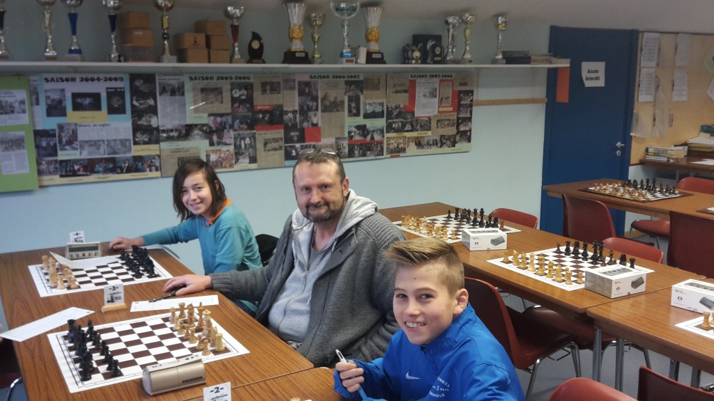 C’est notre Président qui apporte le 1er points, si important dans ces rencontres de coupe, contre Denis Schall (2078). Un match complétement ouvert et difficile à gagner en finale. Contre toute attente, c’est Constant qui plie la rencontre en gagnant contre Musialowski Julien (1919). Une ouverture totalement à l’avantage de son adversaire, mais se reprend à merveille en fin de partie pour faire Dame. Superbe perf, bravo Constant ! Et notre petit lutin, Noah qui semble imbattable en ce moment, réussit, sur une arnaque, à battre Razanajato Harenome (1784). Il faudra surveiller son prochain élo FID, il risque de faire un sacré bon en avant. Quand à moi, ne voyant plus vraiment d’intérêt à continuer, je me suis contenté du nul contre le jeune Fischer Matin (1680). Prochain rendez vous pour les demies finales, le 4 juin 2017. (Laurent)