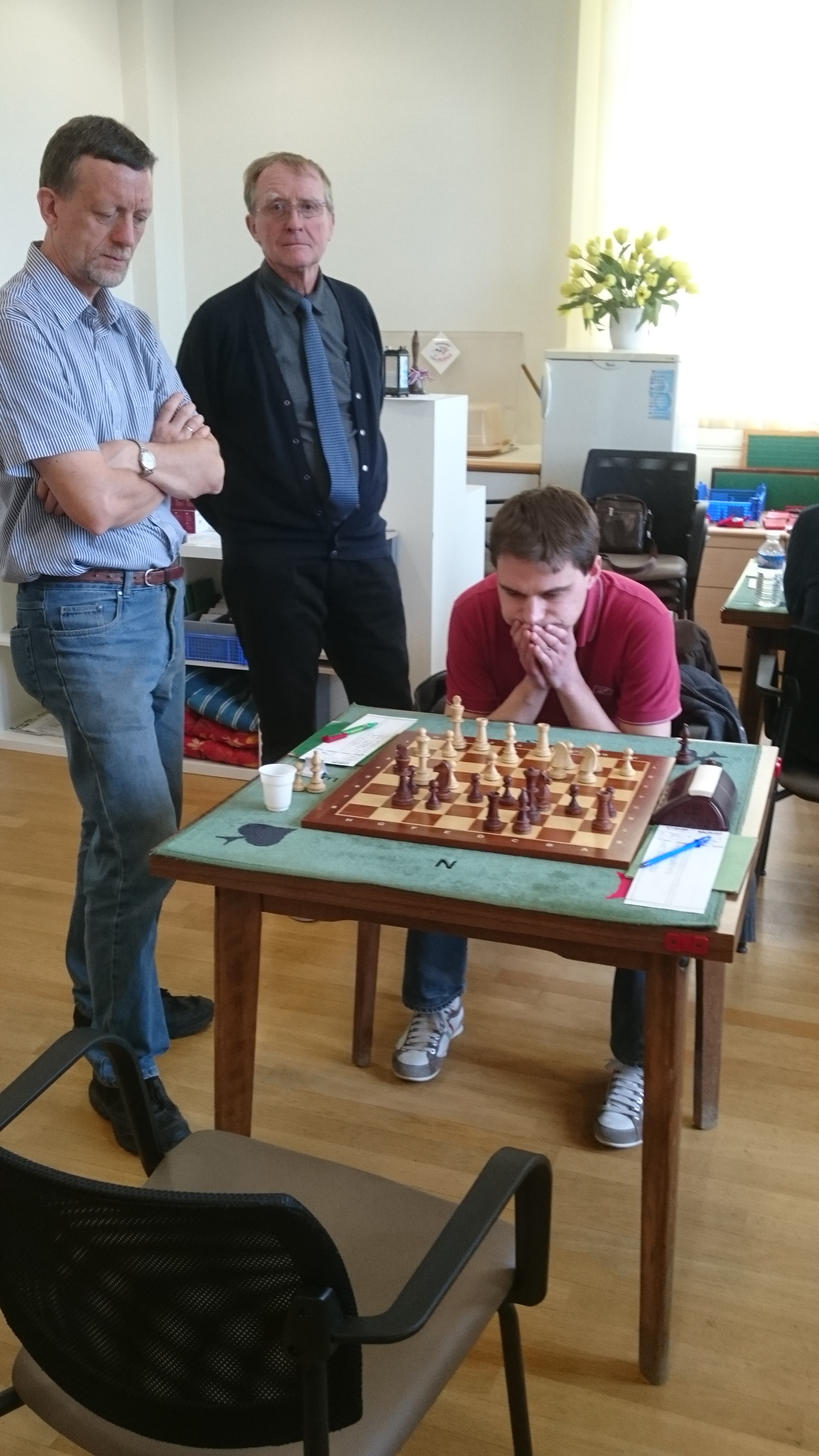« Lolo », qui revenait de blessure, a plutôt bien maitrisé son sujet contre la jeune et sympathique Sonet Kelly (1693). C’est en 20 coups qu’il apporte un point précieux à notre Team. C’est la partie de Noah qui fut la plus belle, avec une combinaison de mat avec sacrifice qui force l’abandon de Vogliqi Xhemshid (1662). Noah est invaincu en N III. Bravo !
