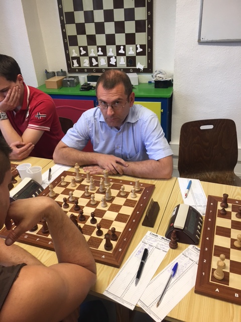 Gertsheim avait mis une grosse équipe et j’ai rencontré, avec les noirs, Schmider Bernd (2204) qui m’a très vite mis en difficulté dans l’ouverture. J’avais essayé de sortir mon adversaire de la théorie mais j’ai du abandonner au 36ème coup car la position était complètement perdue. C’est ensuite Julie qui s’est inclinée face à Ianniciello David (1887) suite à un sacrifice de pièce qui ruinait la position de son roi. Dès lors nos chances d’aller en finale étaient anéanties. Olivier contre Schmider Niklas (2112) n’a pas non plus faire grand chose contre ce jeune et redoutable allemand très solide et perd à son tour sa partie. Seul satisfaction avec Lolo qui l’emporte face à, une veille connaissance, Grandidier Raphael (1984). Nous n’avons pas à rougir de cette défaite car Gerstheim était supérieur à nous sur tous les échiquiers. Notre beau parcours en Coupe d’Alsace s’arrête ici et je souhaite bonne chance à Gertsheim contre Mulhouse en Finale, ce qui ne sera pas facile au vue de l’équipe qu’ils ont aligné contre Strasbourg. Merci à Sélestat pour l’accueil et à son arbitre du jour, Pierre Lefebvre.