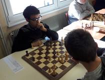 J’ai fait joué Temuulen au 1er échiquier pour qu’il puisse améliorer son élo, mais il perd son match contre Jouchter Alain (1864) beaucoup plus fort que lui. « Jo » était grippé de son retour de voyage en Russie où il a pris froid. Il loupe le gain sur une partie nettement à son avantage face à Fichter Philippe (1524). Bruno et moi, difficilement contre Broggini Claude (1240) avons fait le boulot. Mais je jeune Ilias perd trop vite sa dame et lâche sa partie contre Vatonne Jean Paul (1330).