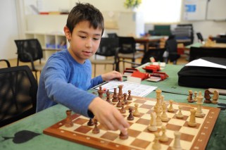 Le petit Théo, au 6e échiquier, est le premier à riposter. Clouage, fourchette, menaces à la découverte… Il puise dans la batterie de ses savoirs et, bientôt, gagne un Cavalier, un Fou, et, finalement, la partie.