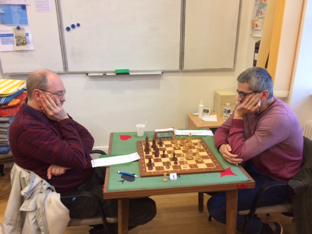 Si Constant, joueur solide et sûr, assure le contact en annulant au 2e échiquier, il appartient à Jean-David et Danielle de revenir au score tout d’abord, et puis, porter l’estocade. Ils gagnent et l’un et l’autre. Et leurs victoires ne doivent rien au hasard. Jean-David conduit un jeu posé, ses pièces développées de manière harmonieuse, en appuie des pions centraux qui, tels des flèches, percent la défense adverse. Danielle, elle, elle allume l’échiquier. « Au secours, les pompiers ! » – « Faites le 15 ! » Jeu au centre où son mur de pions qui avance comme un tsunami. Mitraille à l’aile Roi où Dame et Fou menacent de dévaster. L’adversaire plie, rompt et, finalement, se rend.