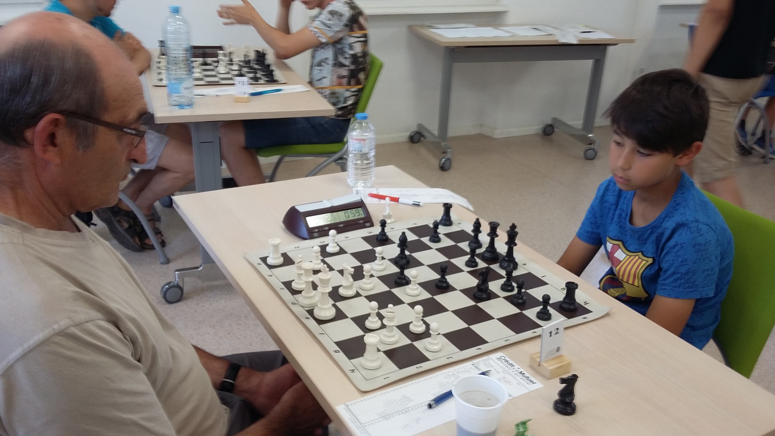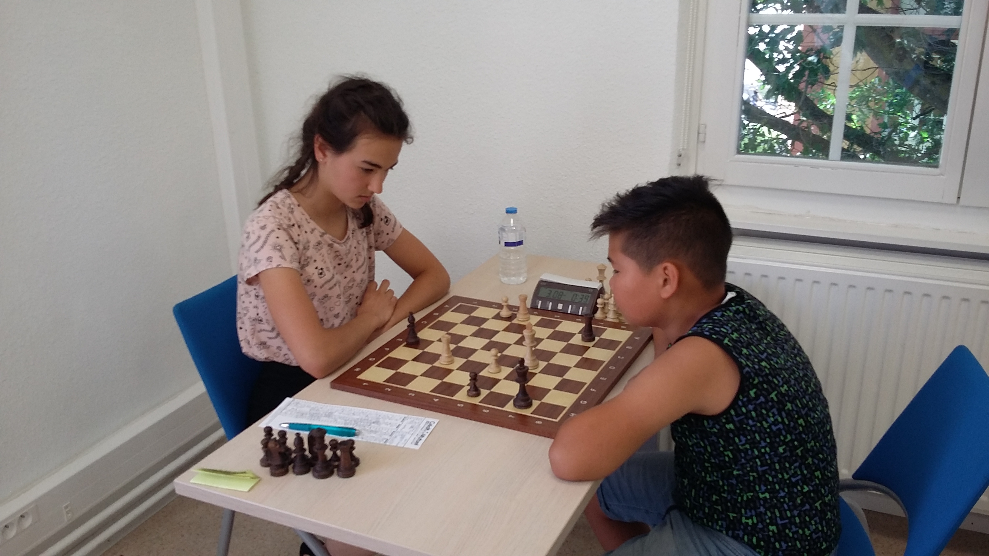 Petit commentaire du papa de Typhanie : « Céline a fait une belle 1ére place, au bout de 2h15 de jeu allant chercher sa dame elle a contraint Temuulen (Philidor) à l’abandon. Merci a elle pour la partie d’échauffement ce qui a motivé Typhanie« . (Vincent)