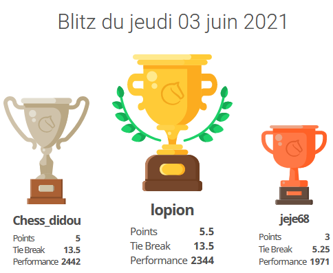 Résultat du Blitz du jeudi 03 juin 2021