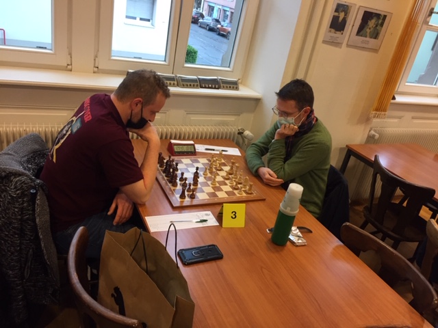 Aligné cette saison dans un groupe Est très relevé en N3 FFE , le team Huningue 1 a bataillé dur au cours de ce week-end des 13 et 14 novembre lors des rondes 2 et 3 – Samedi , avec deux cadres absents , il est allé faire un mauvais 3-3 dans la salle haut perchée du CE Thur à Thann – Notons les victoires de Pascal, Pierre Marie , Anuar et les nuls de Jérôme et de Laurent , mais dès ce dimanche 14 au local , contre Ill Régence Ruelisheim , nos joueurs ont scoré 4-0 contre une belle équipe qui n’a rien lâché et a lutté jusqu’au bout – Belles victoires de Jérome, Laurent, Anuar et Karl – Christian , le sympathique président du club badois de Weil am Rhein , Altingen et nuls de Zelko, Pascal , Noah à l’arrache et de Nicolas très appliqué qui rejouait au club depuis hier.