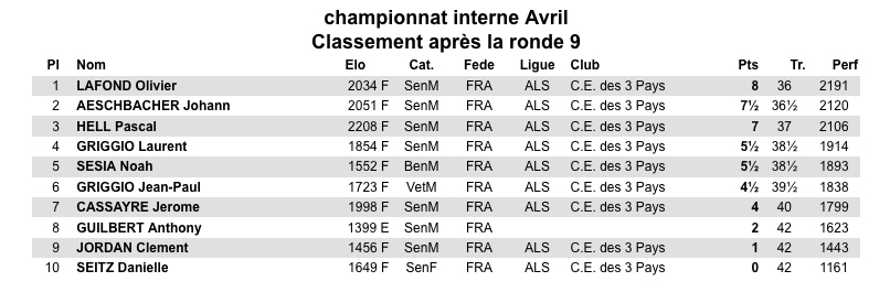 Résultats du toute rondes ( aller 3min+2s retour bullet 1 min)