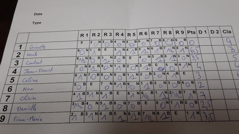 Résultats du 1er blitz de la nouvelle année 2019: