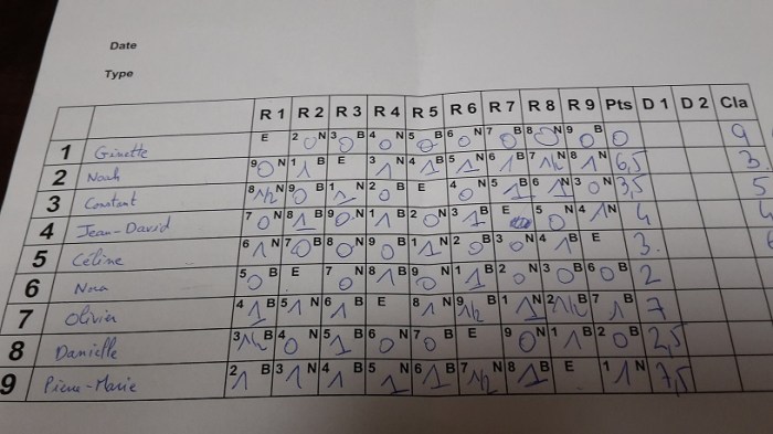 Résultats du blitz du jeudi 4 octobre 2018