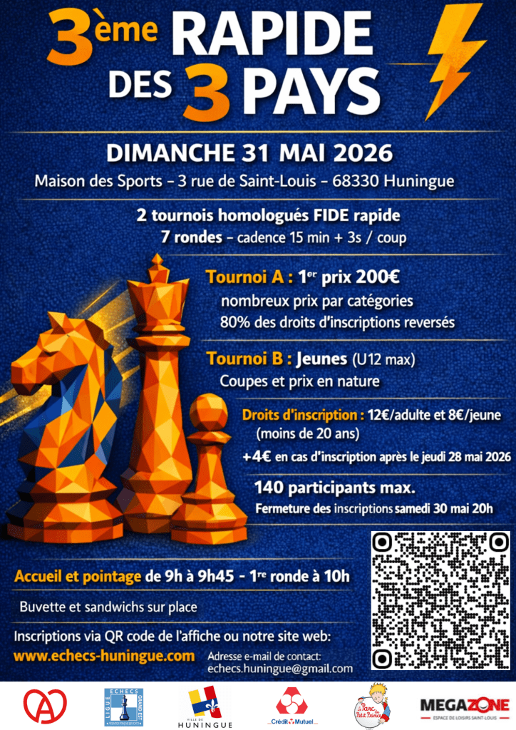 Samedi 13 décembre2025, le club vous propose dans nos locaux, Place Abbatucci, un petit tournoi de Noël gratuit et ouvert à tous les jeunes. Format : 6 rondes, cadence 10 min + 2 s par coup, appariements au système suisse, avec coupes et petites récompenses par catégories.