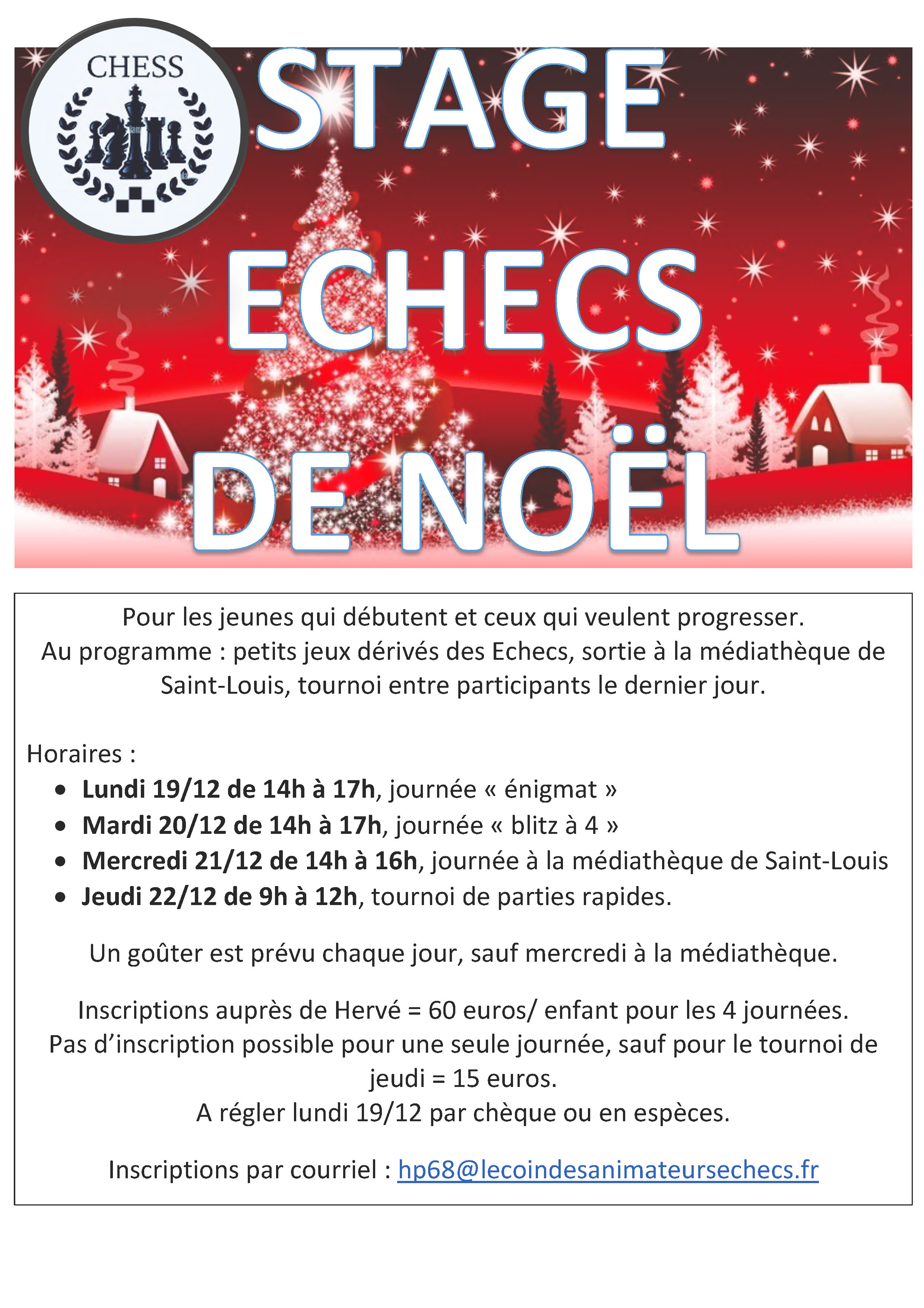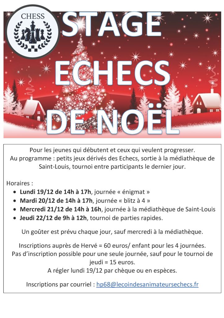 Vous avez encore la possibilité de vous inscrire pour le tournoi de jeudi matin (15 euros goûter compris).